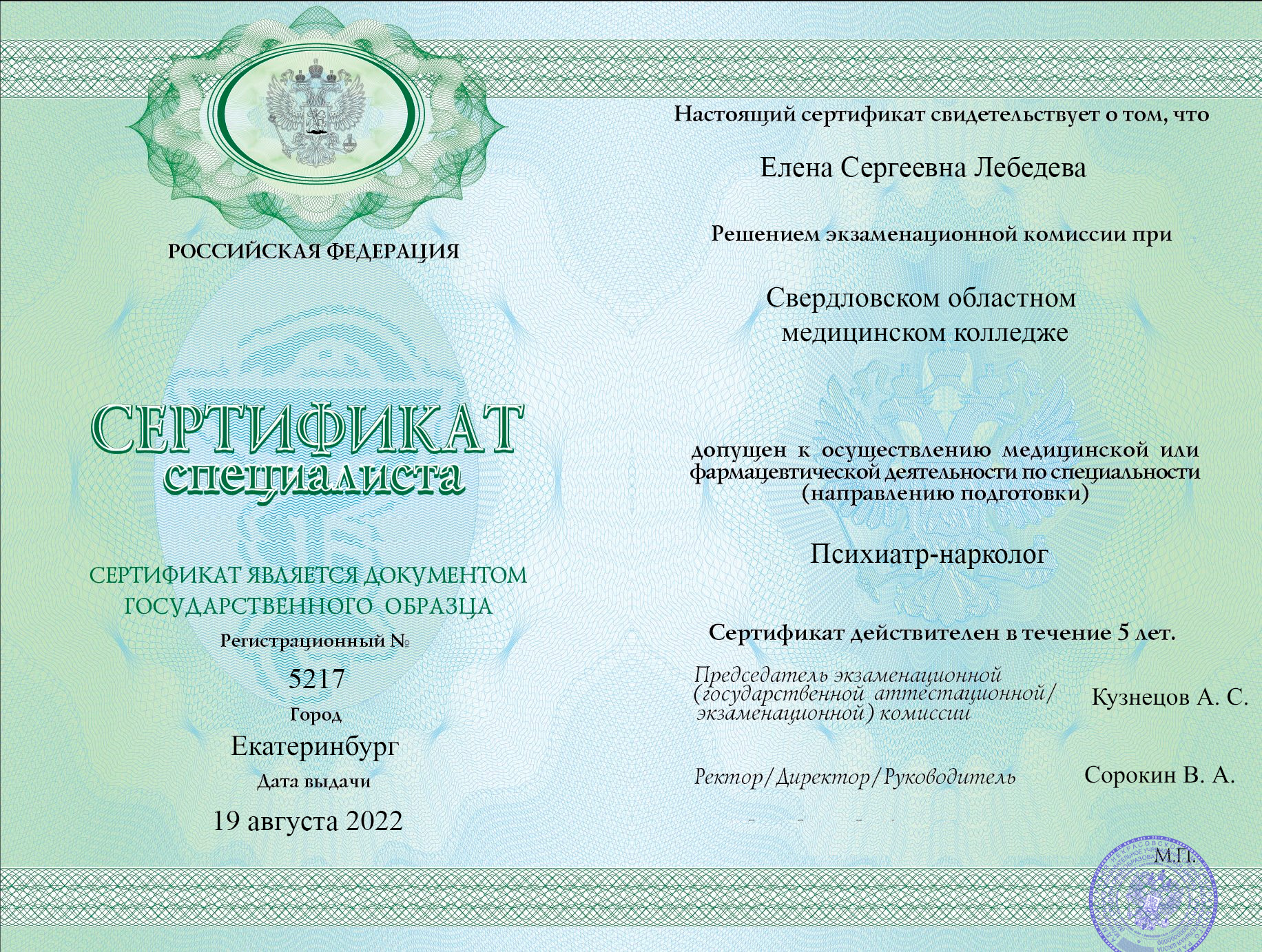 Елена Сергеевна Лебедева врач нарколог клиники доктора Стукаловой в Новой Ляле